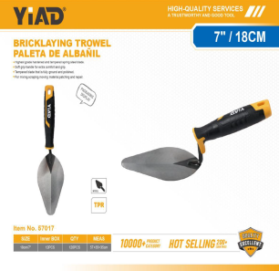 Brick Laying Steel Trowel - Oval Shape - Rubber Handle - 7"/180mm